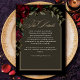 Dark gothic red green floral moody wedding details enclosure card