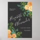 Beautiful modern peach roses and peony floral on dark charcoal gray. This design is elegant and classic and perfect for a spring, summer or fall wedding.