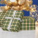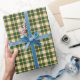 All occasion wrapping paper with a Plaidwerx original sporty plaid pattern in dark green and yellow gold plaid pattern with white accents.