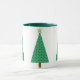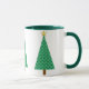 Mug in a simplified modern take on a classic Christmas tree motif, in a dark emerald green arabesque pattern