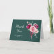 A classic folded thank you note in a light, airy script font. The front of the card is accented with burgundy roses, pink peonies and feathers against a rich dark green background for a pop of colour. The inside is blank so you express your gratitude personally