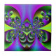 a colourful fractal art design tile of dark green butterflies with purple background