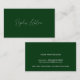 An elegant and simple dark emerald green contact card. Front side: your name (handwritten font-style); back: profession, phone and email... for a classy first impression
