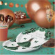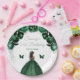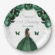 This elegant and glamourous birthday party plate features a beautiful princess with dark skin in a dark green ball gown. The text combines handwritten script and modern sans serif fonts for a classy and sophisticated look. The floral arrangements, butterfly and silver confetti create the perfect blend of rustic and chic.