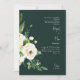 Watercolor elegant white floral. Contemporary wedding invitation. Bride parents. Dark green background.