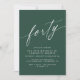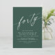 Modern-style 40th birthday invitations with heading "forty" text in a script font. White font on a dark green background.