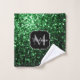 Dark green faux glitter sparkles Monogram Bath Towel Set