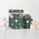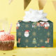 Wrap your gifts in classic holiday cheer with this charming patterned paper! The rich, dark green background provides a sophisticated base for a delightful, repeating cartoon motif. The pattern features the whole holiday crew: a smiling Santa, his cheerful Reindeer, a friendly Snowman, and festive Christmas trees, all sprinkled with golden stars and snowflakes.
