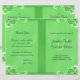 © Sunny Mars Designs - Floral Hibiscus: Dark Pastel Green Folded Wedding Programs - This fully custom wedding program template features an illustration of a green swirly hibiscus floral decoration. Fold this program in half to make it an elegant booklet. Personalise it by adding your wedding party and wedding ceremony details.