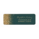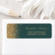 The left-hand edge of this elegant modern wedding return address label features a gold faux glitter design. The customizable text combines pale gold-colored handwriting, copperplate and italic fonts on a dark emerald green background.