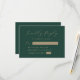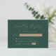 This elegant modern wedding RSVP enclosure card features gold-coloured text on an emerald green background. The title "Kindly Reply" appears in beautiful handwriting script, with customisable text below in sans serif font. The reverse side is solid green.