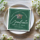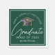 This modern dark green custom senior graduation party napkin features your high school or college name for the class of 2025. Customise with your graduating year under the chic handwritten script and grey grad cap for great formal personalised graduate decor.