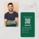 Make a bold and professional impression with this dark green photo QR code design. Featuring a clean minimalist layout with a full photo front and scannable QR code on the back, this modern design makes sharing your contact details simple and stylish. Perfect for professionals, contractors, and creatives, this customizable design allows you to add your photo, social links, and contact information for a polished and memorable networking essential.