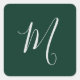 Dark Green Plain Elegant Modern Own Name Monogram Square Sticker
