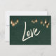 Dark Green Rustic Wood and Edison Lights RSVP Card