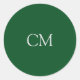 Dark green simple monogram classic round sticker