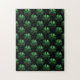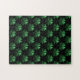 Dark Green sparkly Shamrock pattern on black Jigsaw Puzzle
