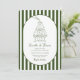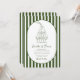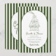 Elegant Green Stripe Wedding Invitation with a hand drawn champagne tower illustration.
