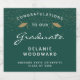 Dark Green White Script Gold Cap Graduation Sparkling Wine Label