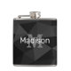 Dark grey black geometric mesh pattern Monogram Hip Flask