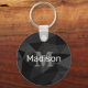 Dark grey black geometric mesh pattern Monogram Key Ring