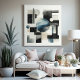 Step into a world where simplicity meets sophistication with this vintage minimalist Bauhaus style inspired wrapped canvas art. The design embodies the Bauhaus principle of form following function, featuring a clean and geometric dark grey, blue, beige, black and white coloured abstract shapes art pattern aesthetic that is both timeless and modern. The canvas art is a celebration of minimalist beauty, with a focus on balanced composition and a restrained colour palette that speaks to the Bauhaus movement’s influence. It is a piece that doesn’t just hang on your wall — it interacts with your space, enhancing the environment with its understated elegance. This wrapped canvas art is perfect for those who appreciate the legacy of the Bauhaus — a beacon of modern design that continues to inspire artists and designers around the globe. It’s more than just a decoration; it’s a statement of refined taste and a nod to the pioneers of minimalist design. Let this canvas be the cornerstone of your decor, bringing a touch of historical artistry to your contemporary living space.