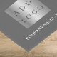 A dark grey background colour. Personalise and add your company logo and a text. White letters. If you want the runner without text, use your back-space key to delete.
