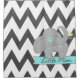 Elegant and Trendy Light Grey and White Chevron Zig Zag Pattern Shower Curtains with cute baby blue polka dots elephant. Chic patterns. Add your name.