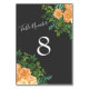 Dark Grey Peach Wedding Modern Floral Table Number