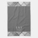 Dark Grey Plaid Personalised Name Monogram Tea Towel