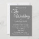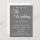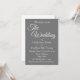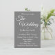 Simple style, wedding invitation that features a trendy, dark grey colour background along with the future bride and groom names and event date, time, location, and registry printed in white, stylised script. Personalise your wedding invitation by replacing info with your own. Select your invitation paper style and quantity. Designed to coordinate with our Dark Grey Simple Style Wedding collection.