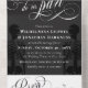 Elegant goth all in one wedding invitation in dark grey, black, and white with swirly calligraphy, and dark skeletons. An elegant wedding invitation for a Halloween wedding, goth wedding, or similar.