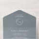 Dark Grey Velvet Minimalist Laurel Wreath Wedding All in One Invitation