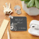 Modern and dramatic wedding keychain features watercolor white / neutral tones floral corner on poppy seed grey background with white customisable text blocks in modern fonts