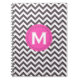 Dark Grey White Monogram Chevron Pattern Spiral Notebook