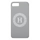 Dark Grey Wht Greek Key Rnd Frame Initial Monogram Case-Mate iPhone Case