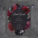 Step into the enchanting realm of our Halloween bridal shower brunch invitation, where love meets mystery in a spellbinding celebration. Against a backdrop of rich charcoal black, this invitation sets a bewitching tone for your special day. Encased within a black oval text frame, your shower details stand out in elegant white script, surrounded by a mystical collection of watercolor flowers in shades of burgundy, rich red, purple, and soft black. Adding an eerie touch to the arrangement, a sequined gloved hand reaches out amidst the blooms, while a silver glitter spider web weaves its intricate pattern around the edges. But the pièce de résistance? A black and silver sparkle bat with spread wings graces the back, inviting your guests to join in the magic of your celebration. Created by Simply Farmhouse Press.