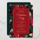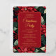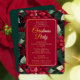 Celebrate the holidays with a touch of timeless elegance. This exquisite corner foil juniper and berries floral design overlay, combined with the dark Christmas red and evergreen holiday floral background, captures the beauty and grace of the season. The real gold foil script and serif text add a touch of opulence.