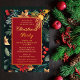Celebrate the holidays with a touch of timeless elegance. This exquisite corner foil juniper and berries floral design overlay, combined with the dark Christmas red and evergreen holiday floral background, captures the beauty and grace of the season. The real gold foil script and serif text add a touch of opulence.
