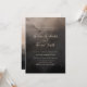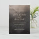 Modern wedding invitation design featuring contemporary typography with soft calligraphy details in white on a dark black and ivory coloured watercolor ink background.
