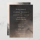 Modern wedding design featuring contemporary typography with soft calligraphy details in black on a dark black and ivory coloured watercolor ink background.
