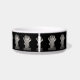 This is a heavy, durable bowl decorated with Tibbies of many colors, the perfect size for hungry/thirsty Tibs. The design is interesting and printing clear.