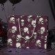 Hand-drawn in black ink, this gift bag features a beautiful pattern of skulls, roses and spiderwebs in cream and blush tones, all against an elegant dark maroon background.