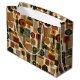 Sophisticated mid-century geometric pattern gift bag featuring layered circles, arches, triangles, and rectangles in forest green, burnt orange, ochre, and cream on a black background. Rich textures and retro-modern shapes create a bold design ideal for Bauhaus lovers, vintage décor fans, and anyone drawn to moody modern style.
