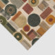 Sophisticated mid-century geometric pattern tissue paper featuring layered circles, arches, triangles, and rectangles in forest green, burnt orange, ochre, and cream on a black background. Rich textures and retro-modern shapes create a bold design ideal for Bauhaus lovers, vintage décor fans, and anyone drawn to moody modern style.