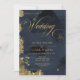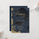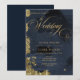 Budget dark midnight blue and gold painterly wedding invitation.