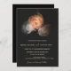 This dark moody wedding invitation features blush apricot roses on a black background.