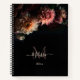 Blush pink and apricot chrysanthemum flowers, a monogram and your name in an elegant handwritten script on a black background.