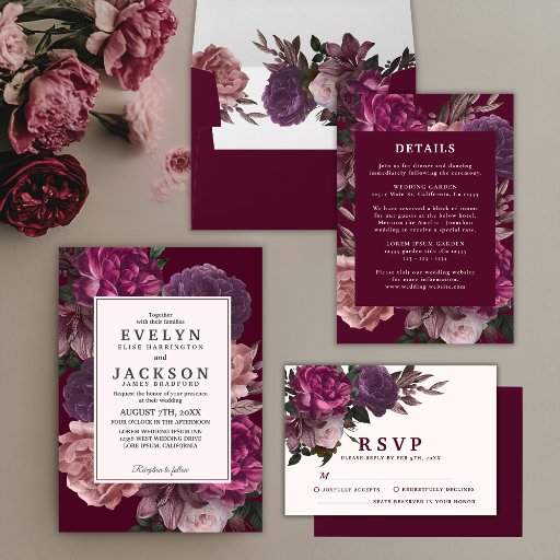 Dark moody burgundy and purple floral Wedding Napkin