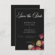 Elevate your special day with an enchanting touch of dark romantic elegance! Our dark and captivating wedding save the date card features a rich charcoal background that sets the stage for a stunning realistic floral-inspired design. Soft mauve, deep burgundy, and creamy peonies intertwine with lush foliage. Set the mood for your event with this exquisitely crafted design that promises an atmosphere of enchantment and sophistication. Created by Simply Farmhouse Press.